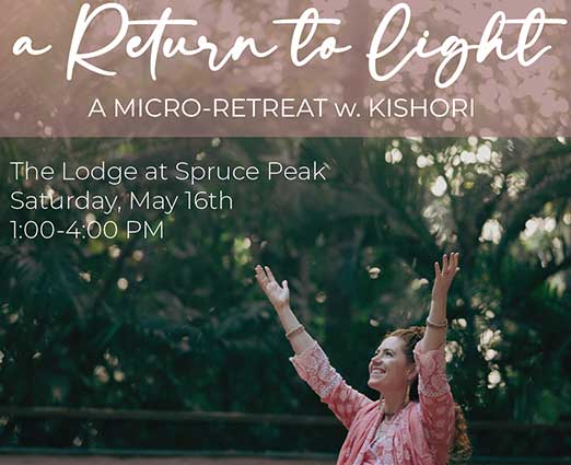 and remember the quiet, luminous place within. Through this micro retreat, we welcome spiritual teacher Kishori to lead an afternoon of yoga asana, kirtan (musical meditation), sound + energy healing, yoga nidra, with the subtle support of aromatherapy.